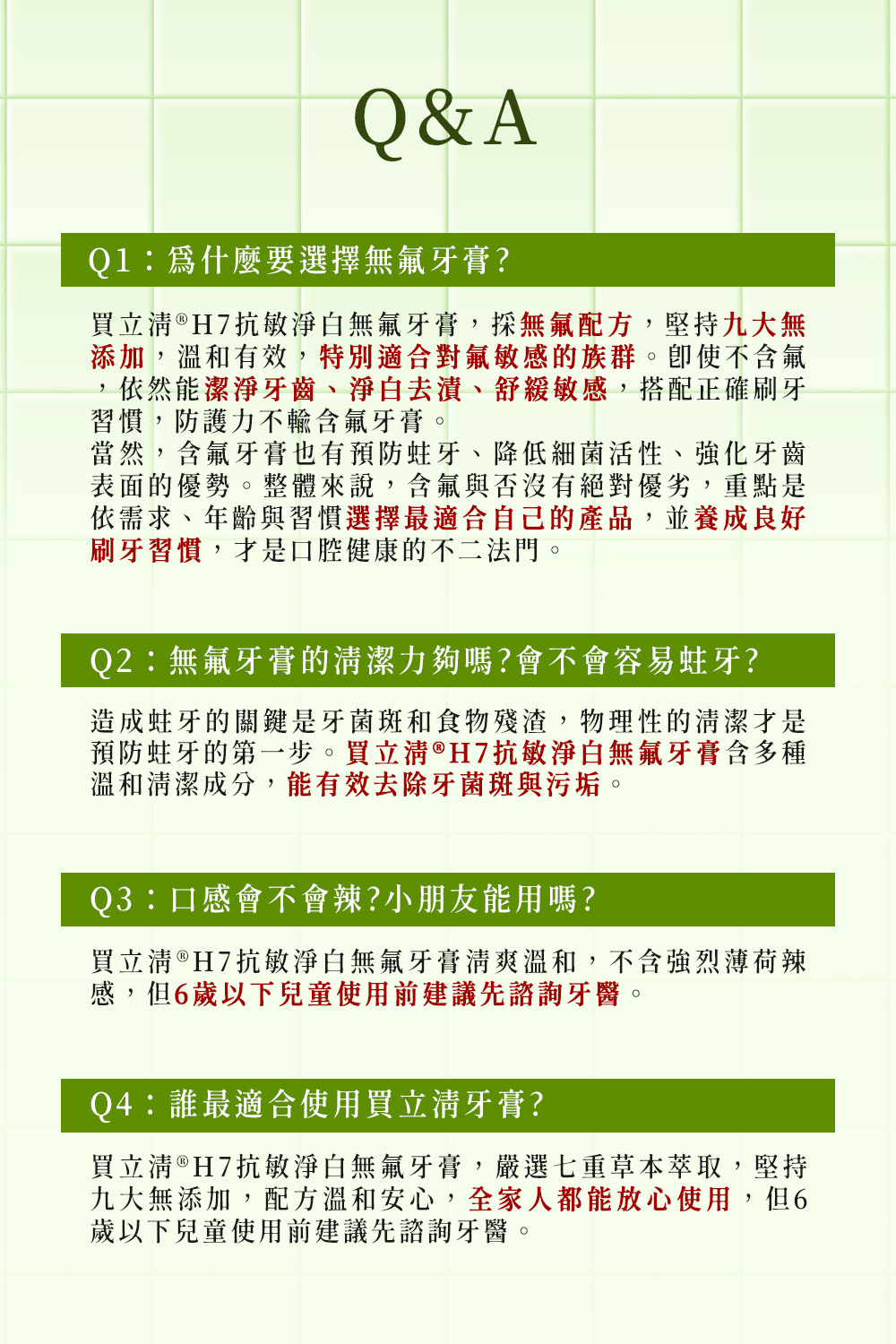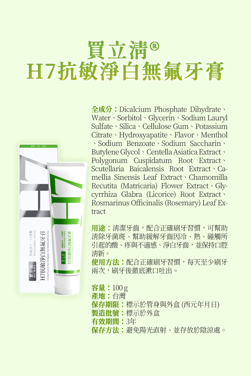 【 🪥買立清® H7抗敏淨白無氟牙膏 】